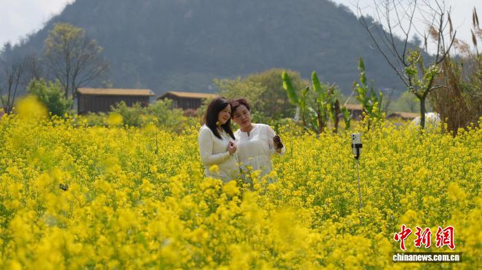 图为3月17日,搭客正在贵阳市北亮区永乐城的油菜花海里摄影挨卡。石小杰 摄