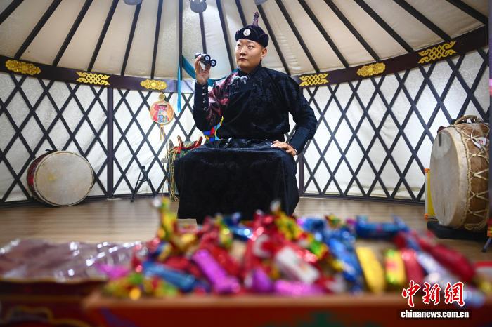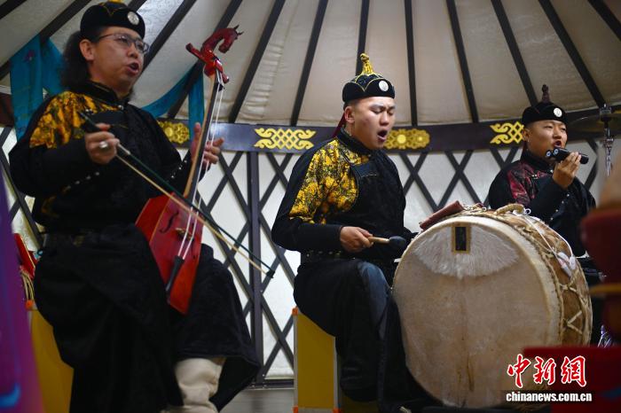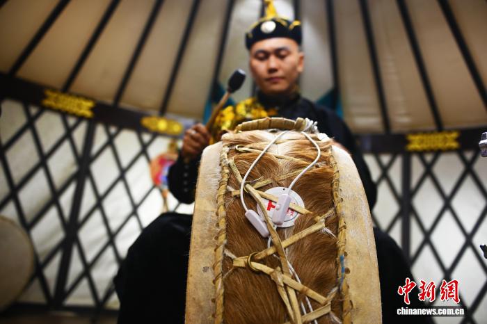 今日正在位于苦肃省酒泉市肃北受古族自制县黑兰牧骑曲播间内乱,黑兰牧骑队员停止“散光妄图”曲播表演。中新社记者 李亚龙 摄