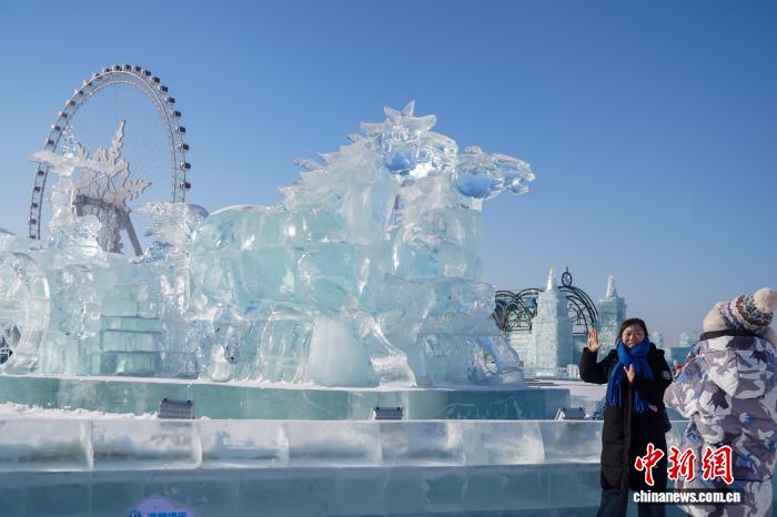 今日乌龙江哈我滨,乘客挨卡“冰雕马”。跟着阴历马年邻近,哈我滨冰雪年夜天下内乱“冰雕马”成为乘客挨卡热点,纷繁取“冰雕马”开影纪念,为便将到去的阴历马年讨个美彩头。中新社记者 赵宇航 摄