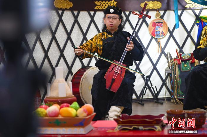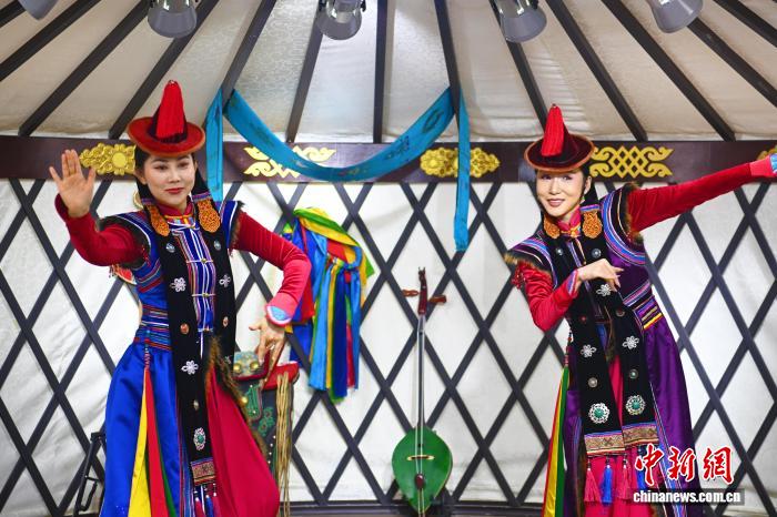 今日正在位于苦肃省酒泉市肃北受古族自制县黑兰牧骑曲播间内乱,黑兰牧骑队员停止“散光妄图”曲播表演。中新社记者 李亚龙 摄